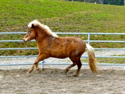 Mutiges Stutfohlen mit schönen Proportionen zeigt einen dynamischen Antritt bei mittlerer Höhe und Weite, sehr taktsicher und geschmeidiger Tölt. (Prämienfohlen)
