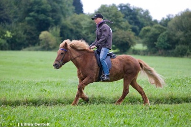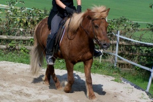 Telpa ist eine flotte und temperamentvolle Fünfgängerin und existiert nur im Höchsttempo. Der Schritt ist eilig und bergab passig. Der Trab ist kurz und energisch und geht meist schnell in flüssigen, taktklaren und akzentuierten Tölt über. Ihr Rennpass ist fliegend und sehr schnell.