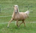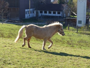 Kompaktes Stutfohlen mit recht guter Aufrichtung, viel Tölt, aber eher flache, kurze Bewegungen und wenig Tempofähigkeit