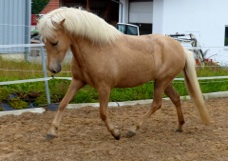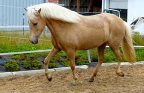 Vina ist Fünfgängerin mit gleich viel Trab und Tölt, gutem Schritt und einer schönen Galoppade. Pass sieht man hin und wieder im Übergang. Sie läuft weich wie eine Feder und verspricht ein echtes „Reitsofa zu werden“.