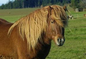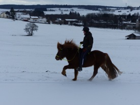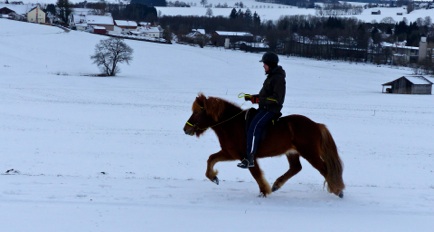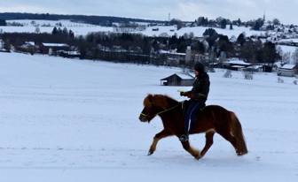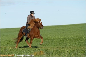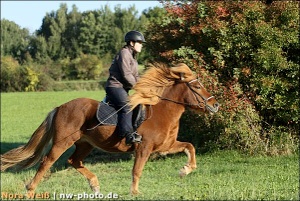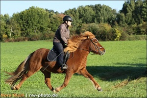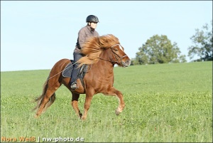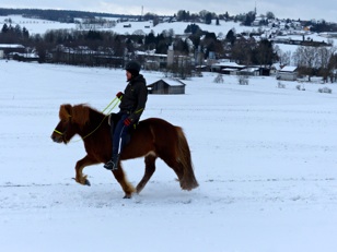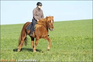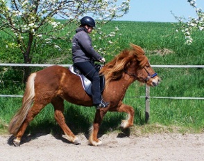 Vinur ist ein Fünfgänger und dank seiner hochgeprüften Eltern mit sehr viel Gangpotential ausgestattet. Der Schritt ist unglaublich weit ausgreifend, man kann fast vergessen, dass man auf einem Pony sitzt. Der Trab ist elegant und schwebend, aber nicht sein Lieblingsgang. Den Tölt mag er am liebsten, meistens taktklar, flott und leichtfüßig. Der Galopp ist auf dem Platz sein Schwachpunkt und eher flach und gelaufen. Der Rennpass ist inzwischen auf Stimmkommando abrufbar und blitzschnell.