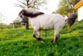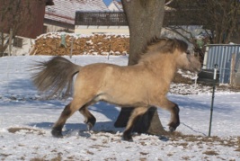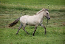 Seine Gänge erfreuen uns jeden Tag aufs Neue. Der Schritt ist taktklar und weit ausgreifend, der Trab energisch mit hochweiten schwebenden Bewegungen und viel Tempo. Der Tölt ist derzeit nur im Übergang zu erkennen, aber jedoch satt vorhanden. Der Galopp ist gut bergauf gesprungen.
